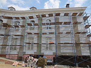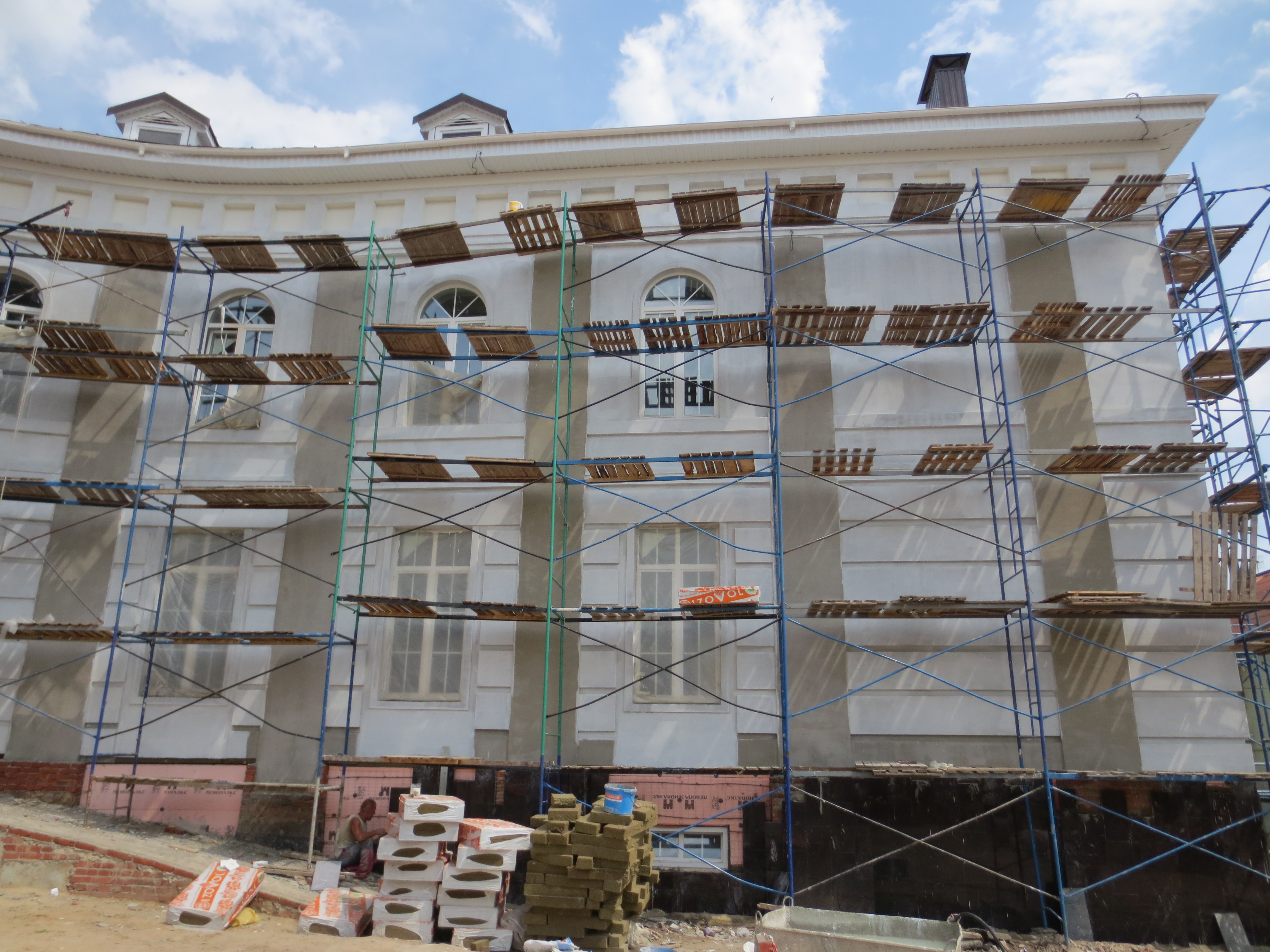 Утепление здания, нанесение армирующего состава на стены,